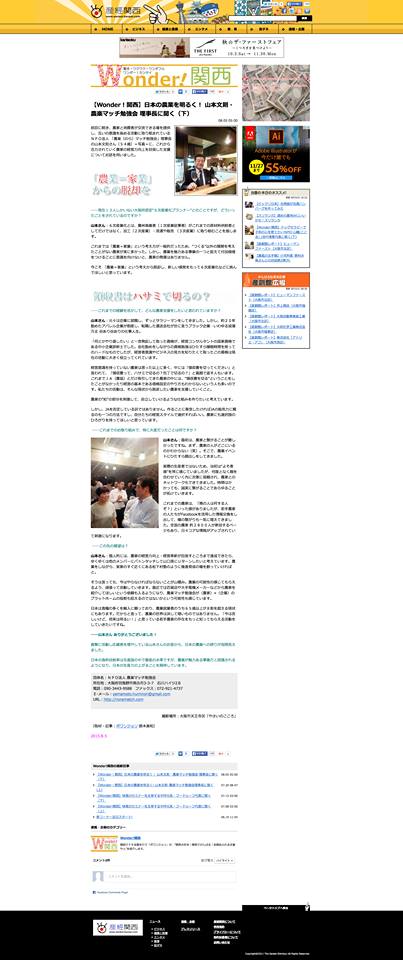 Wonder!関西(産経新聞大坂本社WEBサイト)に2回に渉り紹介して頂きました。